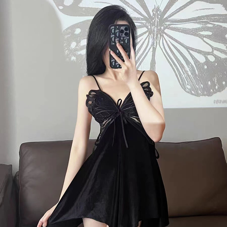 ハイレベルの視点下着下着純粋なセクシーなサスペンダーバタフライガールロマンチックなナイトガウン美しいバックスリムパジャマトリック