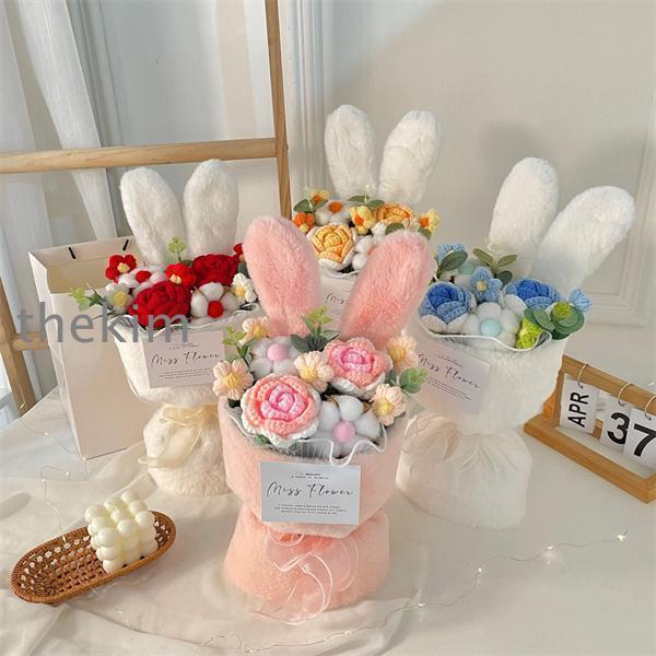 [2025限定モデル] かぎ針編みフラワー花束 卒業式 入学式 就職祝い 退職祝いうさぎのぬいぐるみ フラワー 誕生祝い ブーケ発表会 母の日 父の日 結婚式 ニット花飾り 造花ブーケ