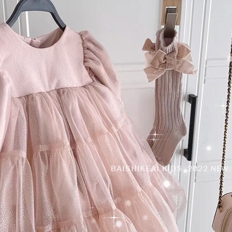 ガーゼワンピ女の子23春新作韓国版子供服子供洋風甘ピンクパフスリーブプリンセスドレス