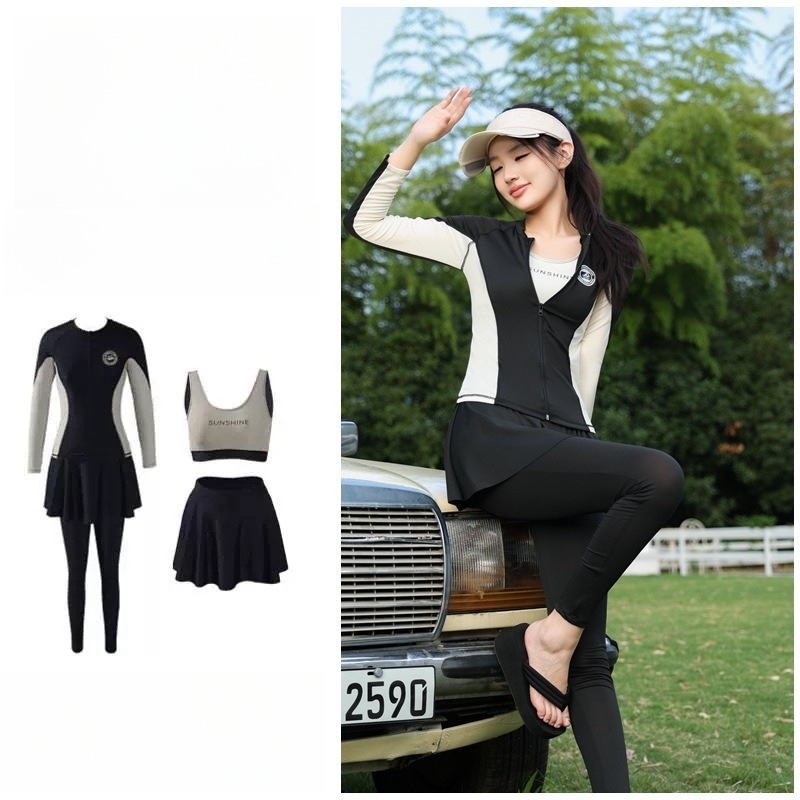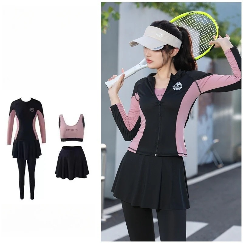 NI「XIAOSHU」急速出荷!品質保証!セパレート 4点セット 水着 レディース 着痩せ 体型カバー スポーツ スイミング/サーフィン 速乾 セットアップ セクシー UV対策 紫外線対策 16
