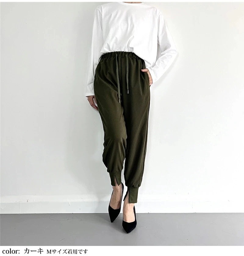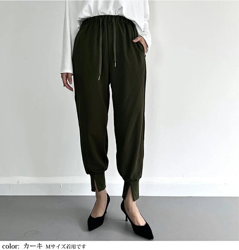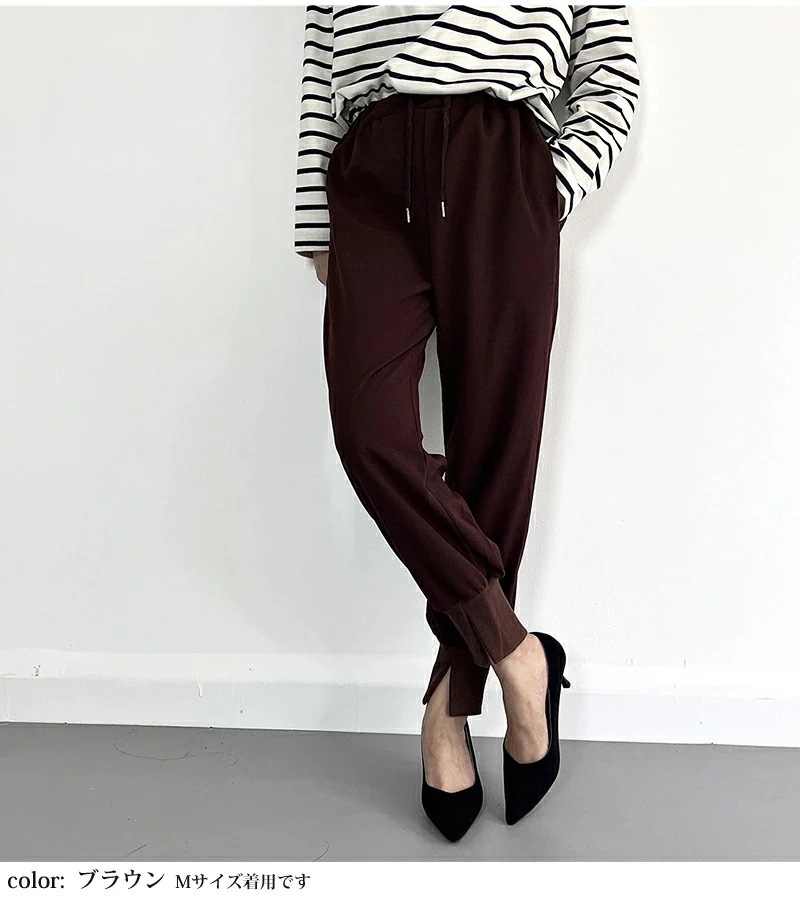 【一部】 裾リブスリットパンツ パンツ レディース 春 秋 冬 テーパードパンツ ボトムス ロング 裾リブ スリット リブパンツ ジョガーパンツ デザインパンツ ストレッチ ジョーゼッ