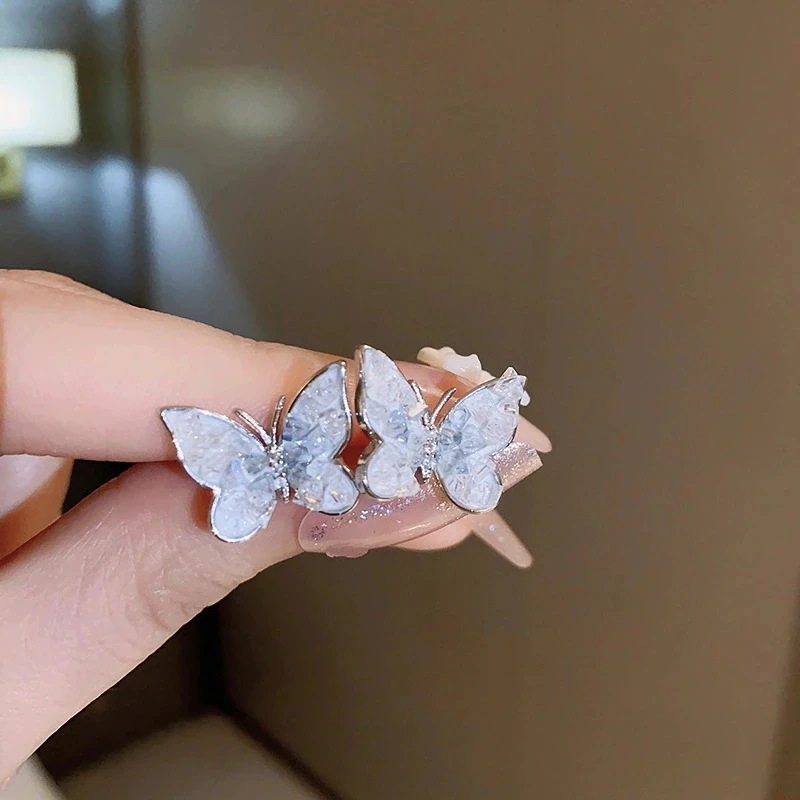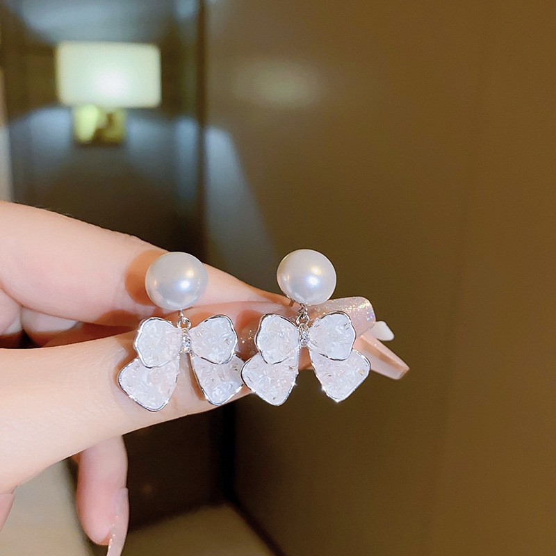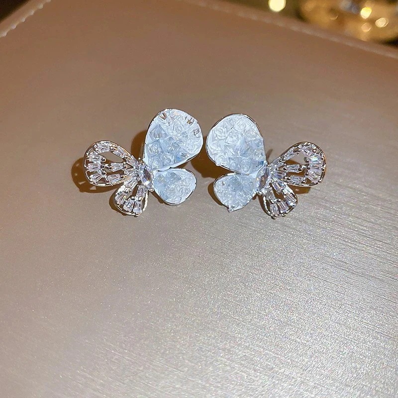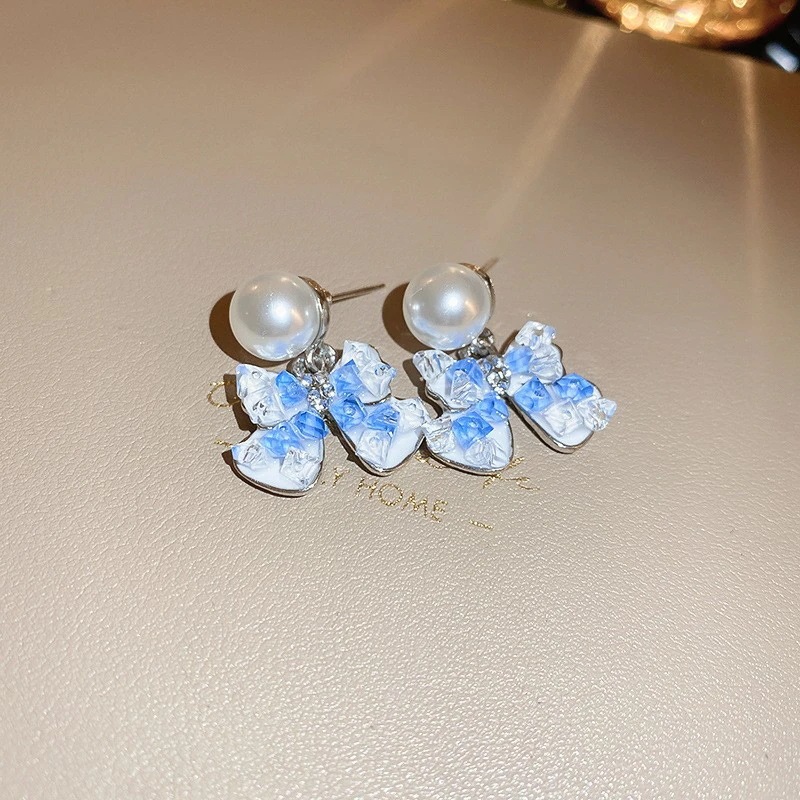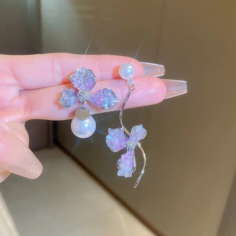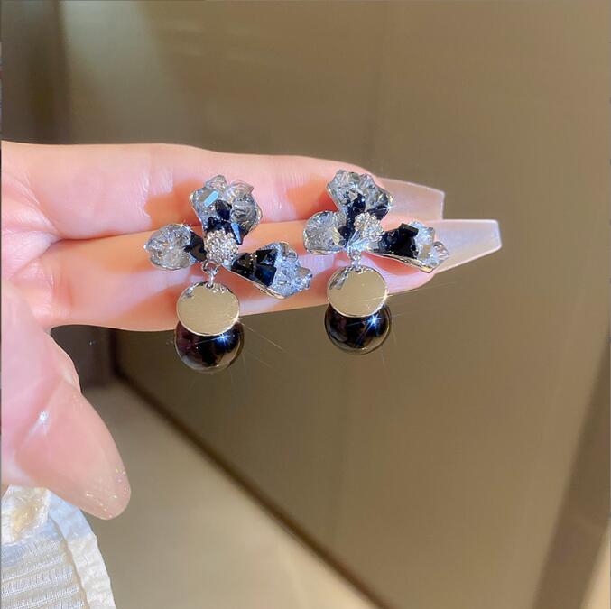 グラデーションクリスタルフラワーピアス 光豪華なデザインのイヤリング 通勤用万能ピアス