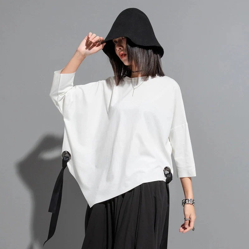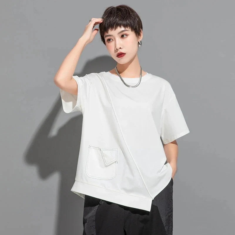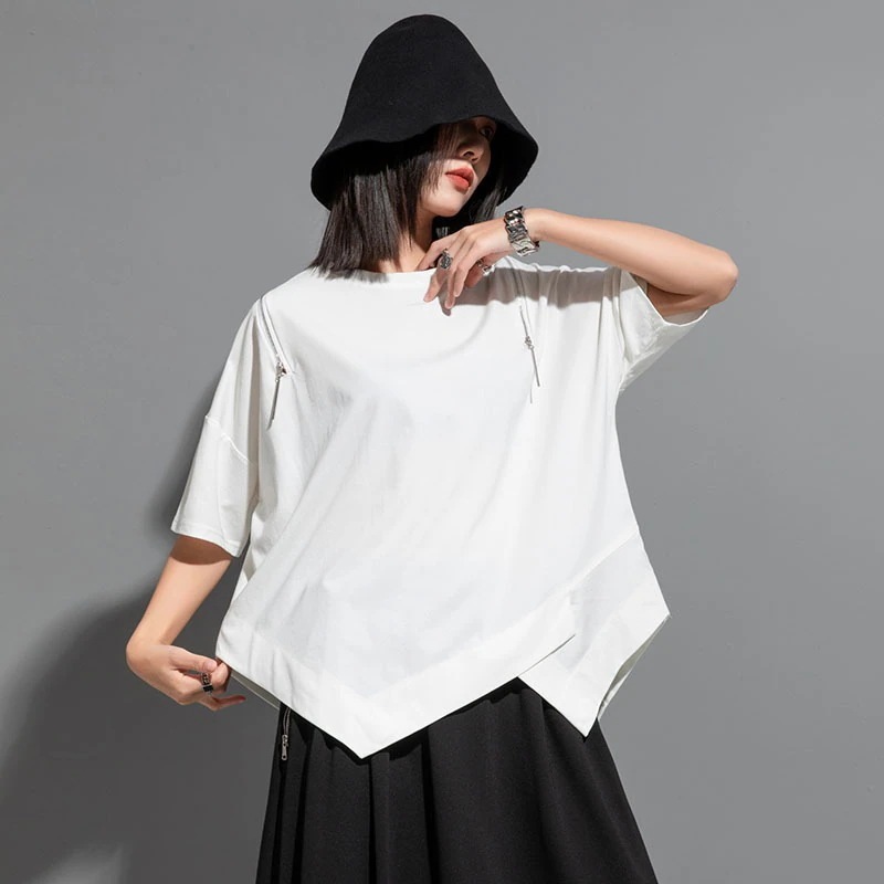 韓国Tシャツ非対称着痩せ効果ゆとり半袖大きいサイズ 上着