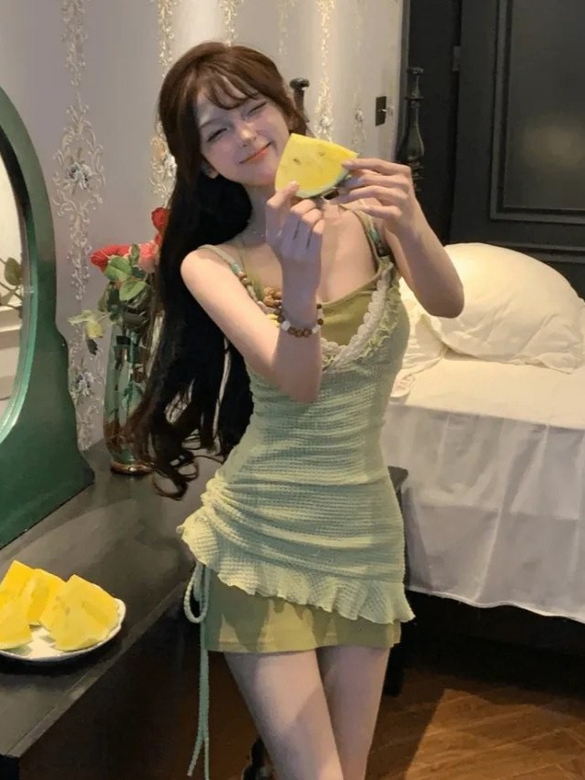 春夏 ワンピース レディース キャミワンピース Vネック ドレス 女性 夏 ロングワンピース 韓国ファッション