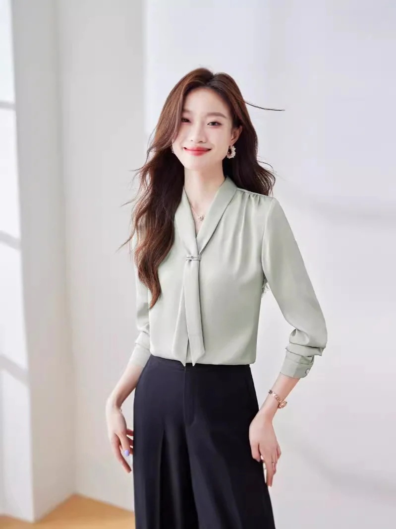 白シャツ シフォン ヒラヒラベルトシャツ 気質 長袖 白シャツ