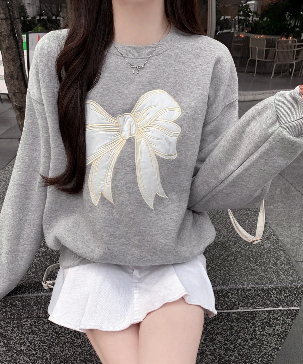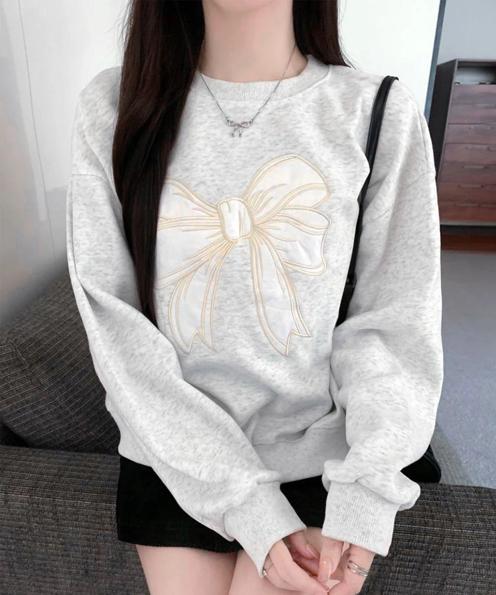 パーカー 刺しゅうリボンスウェット裏微起毛トップス