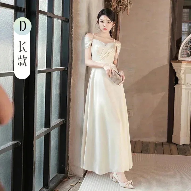 ドレス 韓国 人気のドレスシャンパンサテンのシンプルなガウン成人式 演奏会 発表会 卒業式 結婚式 パーティードレス ドレス