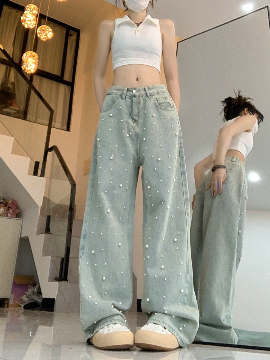 04 ワイドパンツ スリット ストレート ジーンズ 百掛け おしゃれ デニムパンツ ハイウエスト ワイドパンツデニムボトムス脚長効果!スキニーデニムパンツワイドパンツ復古