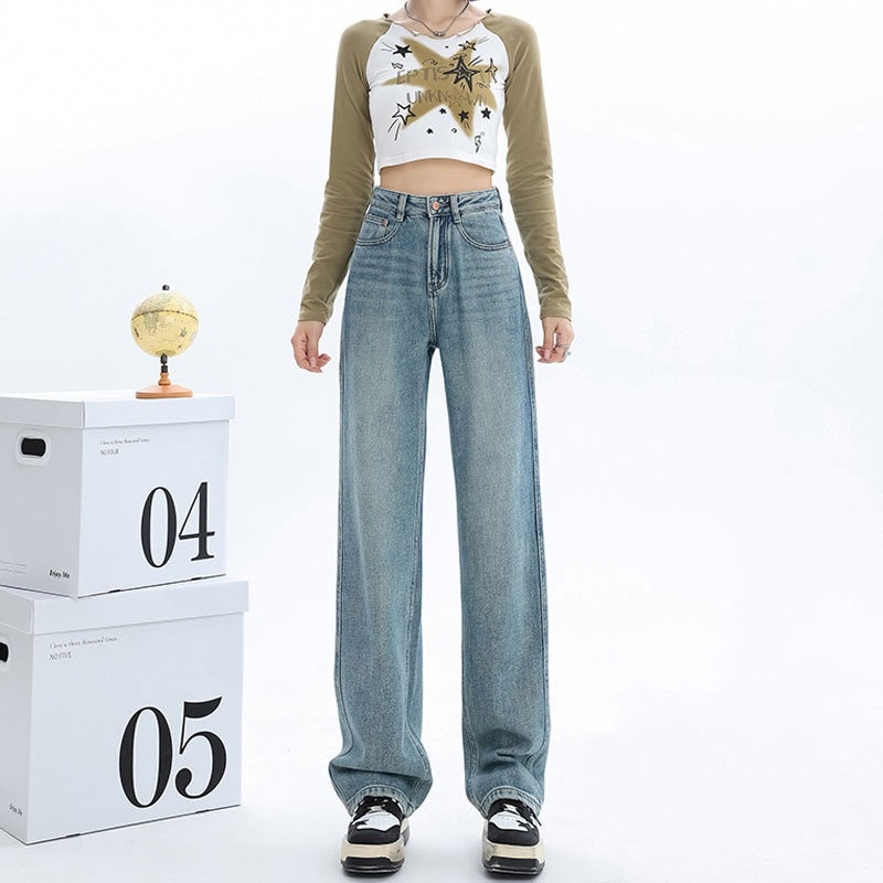 ワイドパンツKZ22 スリット ストレート ジーンズ 百掛け おしゃれ デニムパンツ ハイウエスト ワイドパンツデニムボトムス脚長効果!スキニーデニムパンツワイドパンツ復古