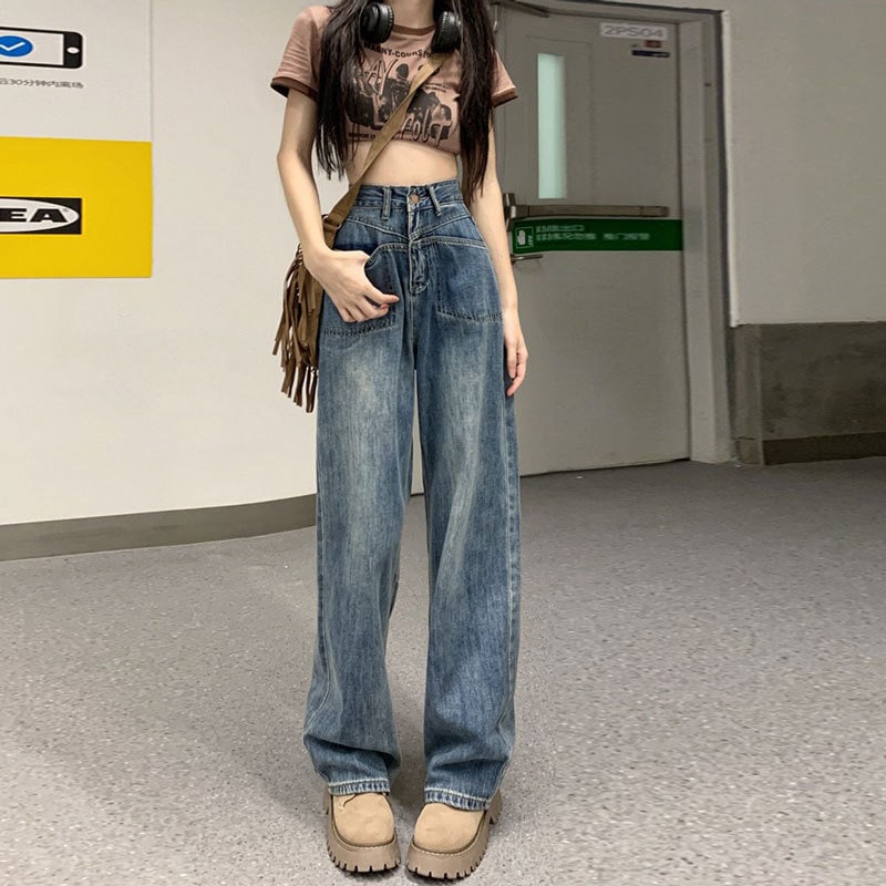 ワイドパンツKZ18 スリット ストレート ジーンズ 百掛け おしゃれ デニムパンツ ハイウエスト ワイドパンツデニムボトムス脚長効果!スキニーデニムパンツワイドパンツ復古