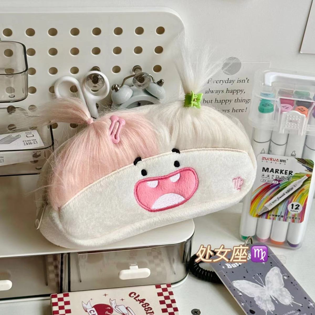 筆箱 新しい綿人形の筆袋かわいいかわいいモコモコ大容量筆箱文具アイデア学生収納insペンケース 韓国 ペン立て シンプル 高校生 文房具バッグ