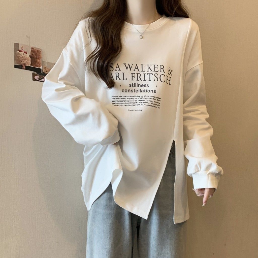 スプリット長袖Tシャツ スウェットシャツ 春秋 新作 ゆったり ロングTシャツ ロンT ロングtシャツ レディース 長袖 ロンティー tシャツ 韓国 ロンティー レディース