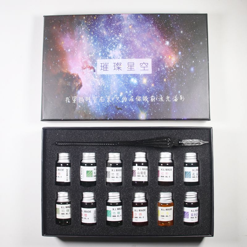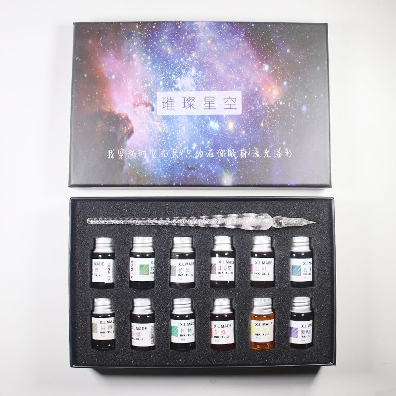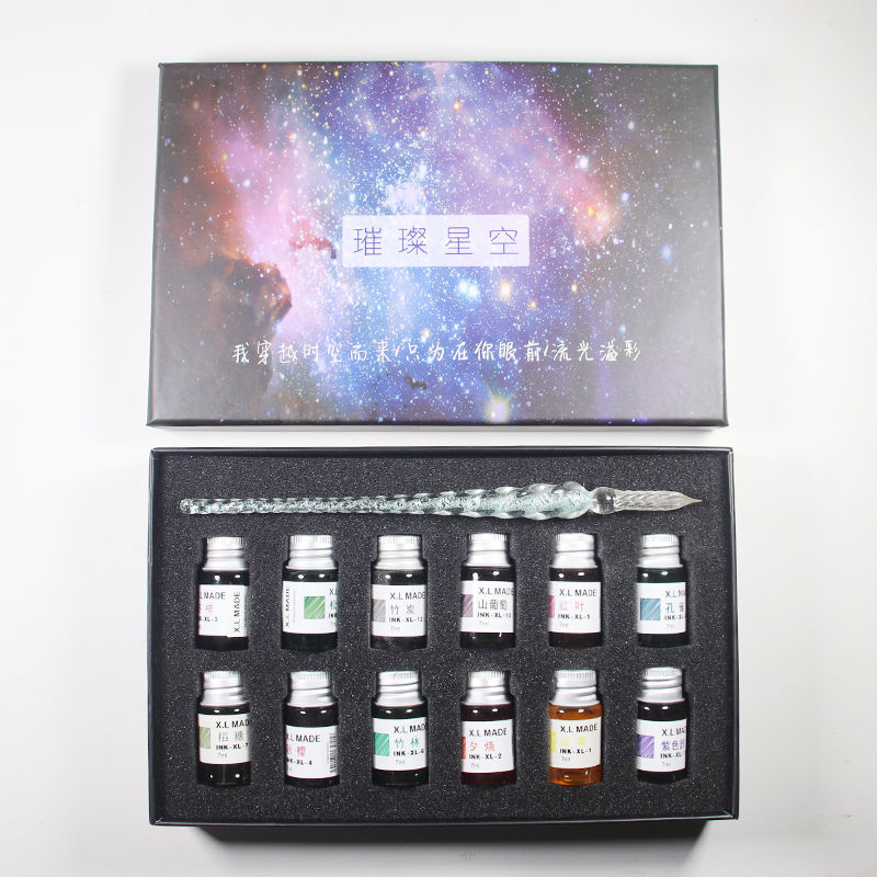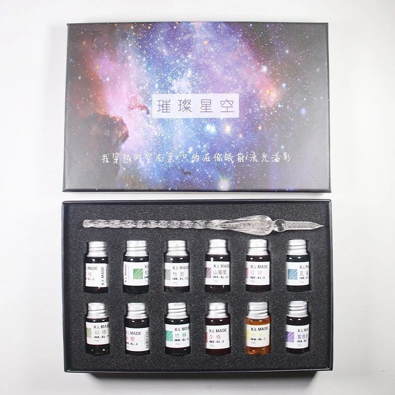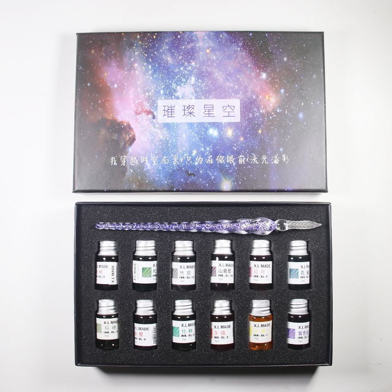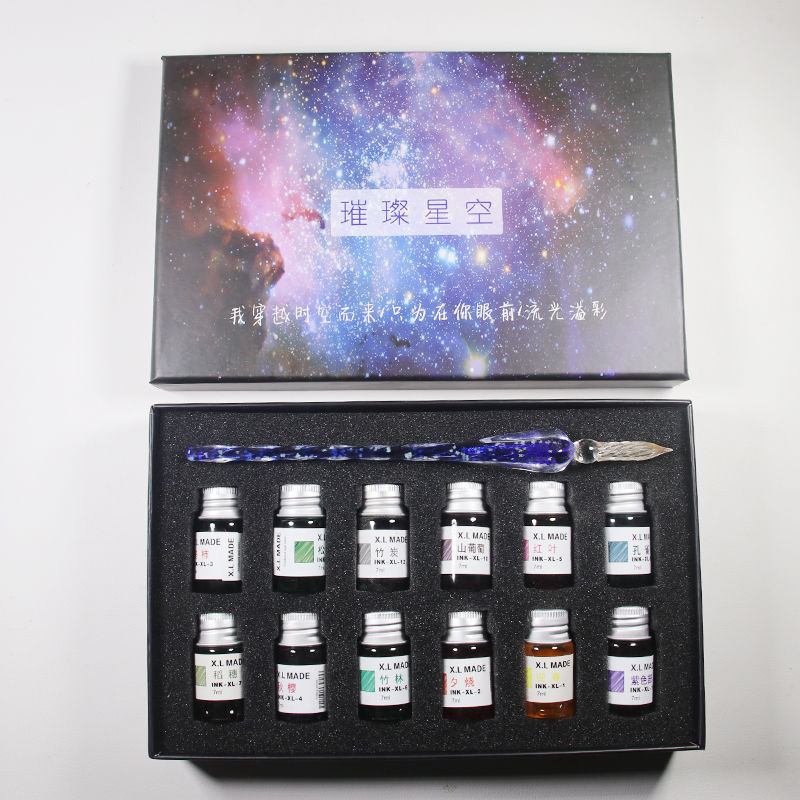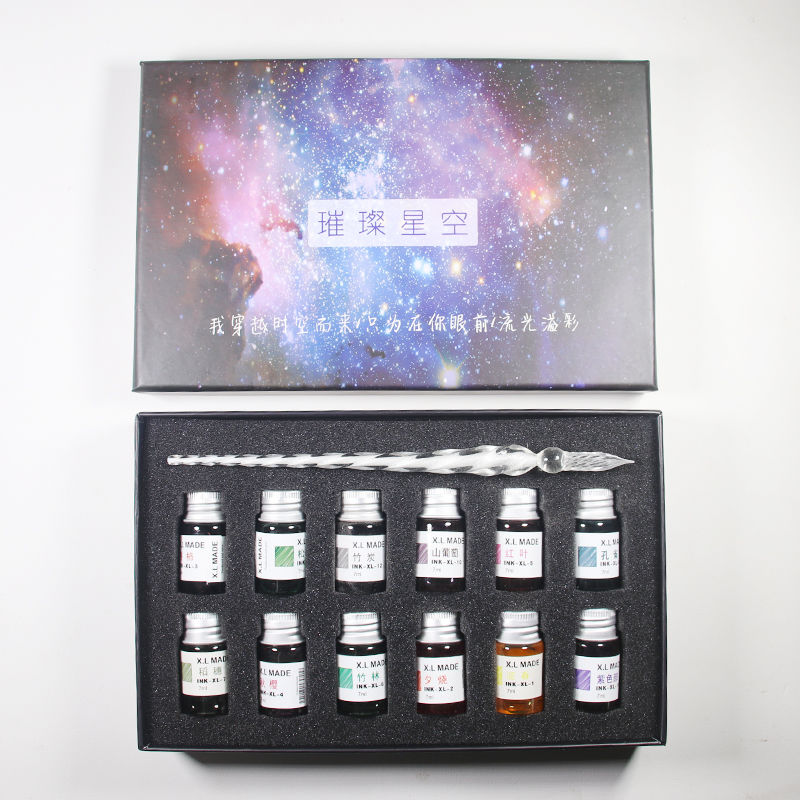 クリスタルガラスペンつけペンセットりアンティークガラス発光ペンインクギフトボックスインターネットセレブギフト