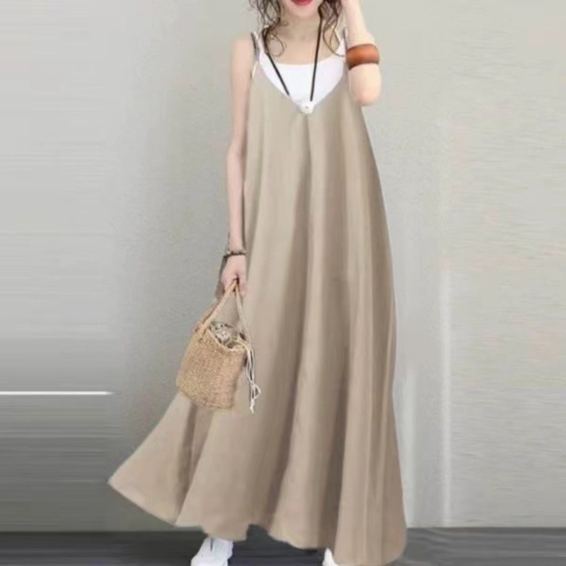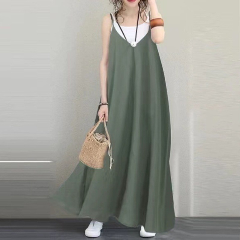 BAQLESS【2025新作】Vネック ロングタイプ ワンピース ノースリーブ ゆったり バックレス 礼装 大きいサイズ 体型カバー 軽量 通気性のいい レディース