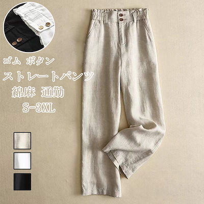 売切必至ストレートパンツ レディース ロングパンツ 綿 麻 パンツ ウエストゴム ワイドパンツ ポケット付き ボトムス 長ズボン ハイウエスト ズボン ストレート 無地 ガウチョパンツ ワイド 高見え