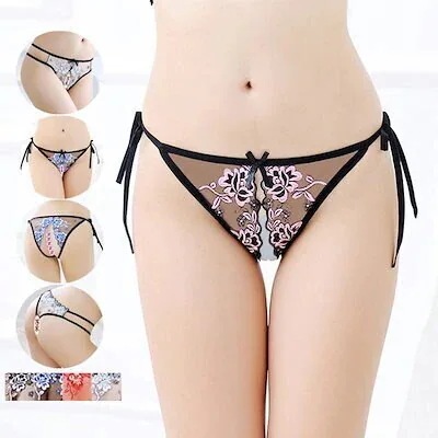レディース tバック ショーツ セクシー レース 上品なお花模様の刺繡 ヒップハンガー 透けパンティ