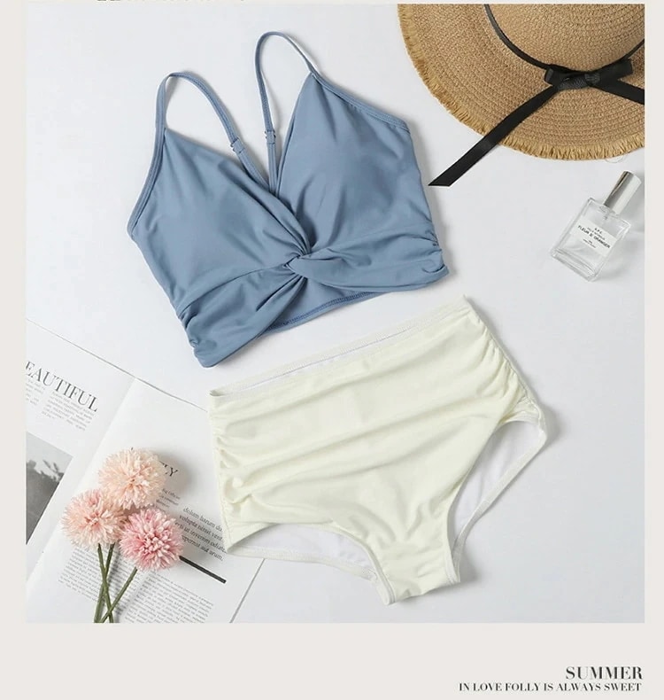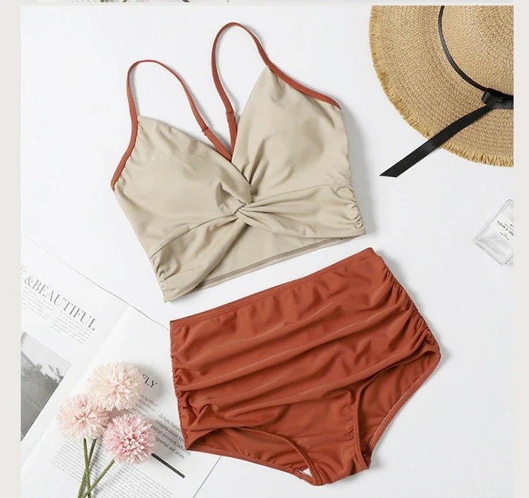 水着 レディース ビキニ タンキニ セクシー バックシャン お洒落 可愛い ハイウエスト ショーツ 無地 シンプル 上品 モノトーン バンドゥ クロスビキニ オトナ女子 上下 大きいサイズ かわいい