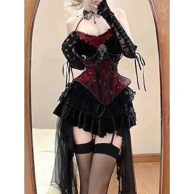 ゴシックコルセットホルターネックサスペンダースーツ取り外し能スカート点セット
