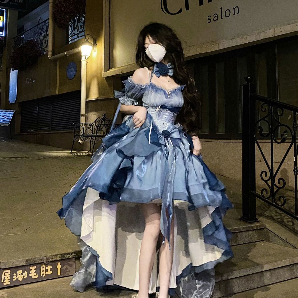 ブルーウェディングドレス ロリータドレス ドレス ロリータ重工テールふわふわプリンセスドレス