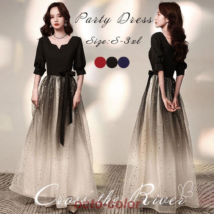 ドレス 大人 ノ 発表会 高校生 パーティードレス 中学生 演奏会ドレス 黒 ロングドレス 結婚式ドレス ブラック マキシ丈 ジュ 韓国 カクテル