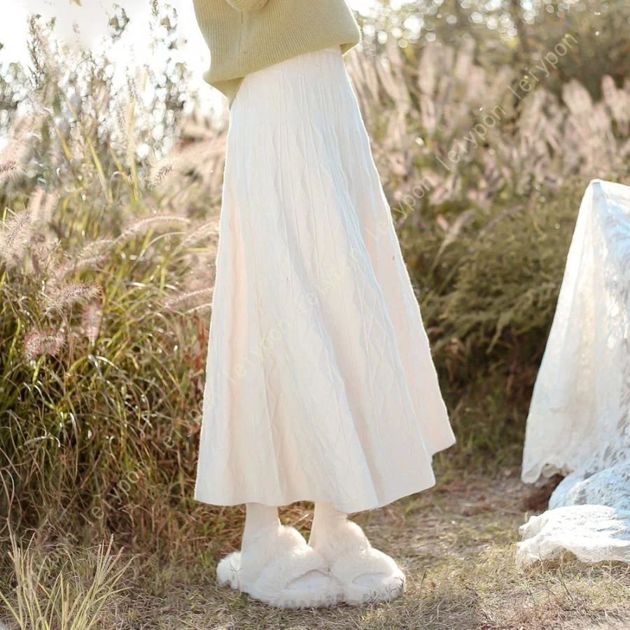 フレアスカート ウゴム ニットスカート 秋 冬 厚手 カシタッチ やわらかい 大人 女子 縦長効果 ミモレ丈 可愛い カジュアル 大人 お洒落 トド