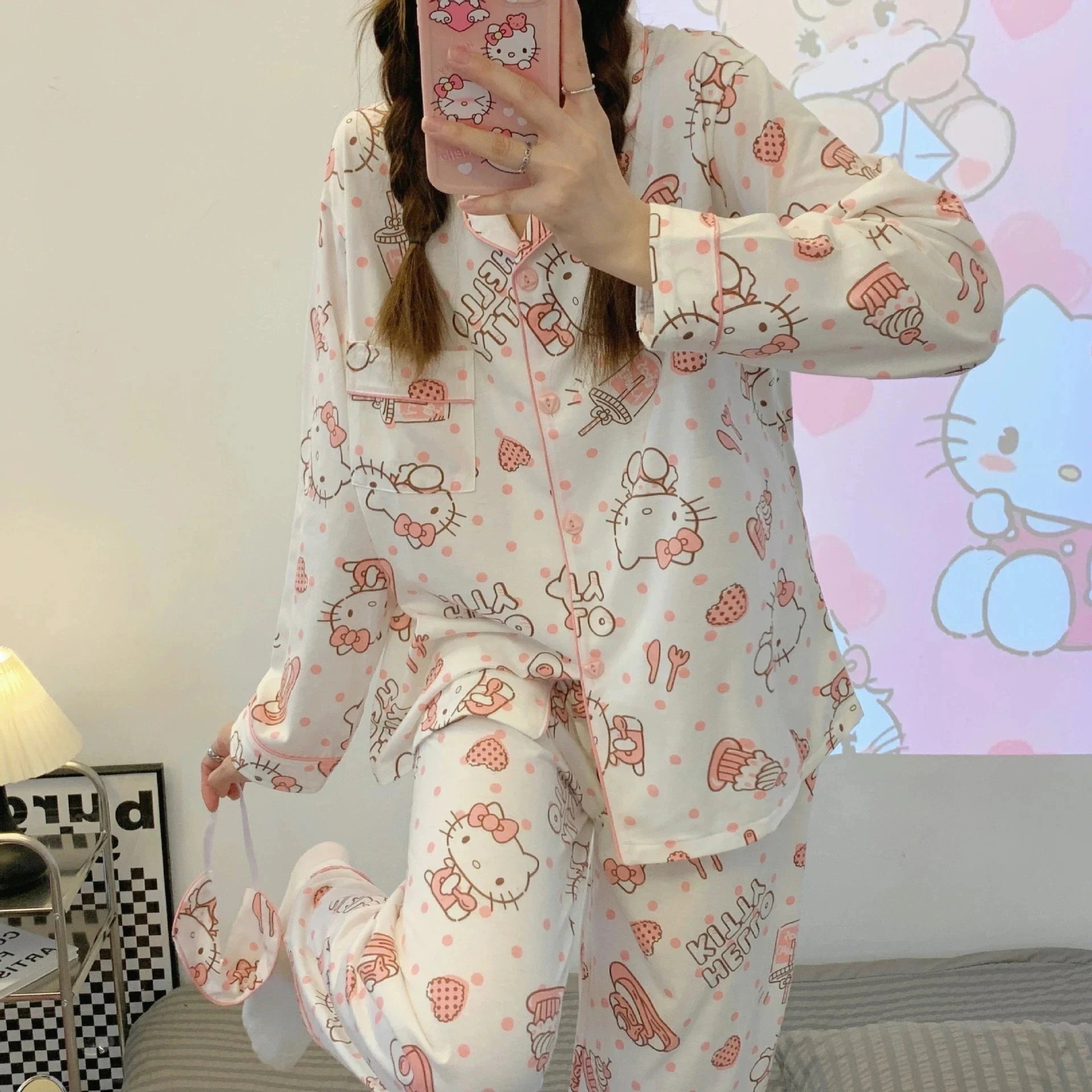 【急速出荷】 期間限定で復活 キティ パジャマ レディース 春秋長袖カーディガン部屋着 可愛/ワンピース韓国 新作 ハローキティ パジャマ サラサラ 生地が柔らかくて快適 部屋着半袖ロングスカート06