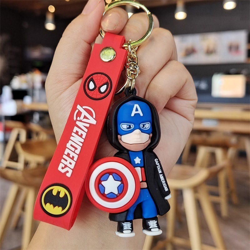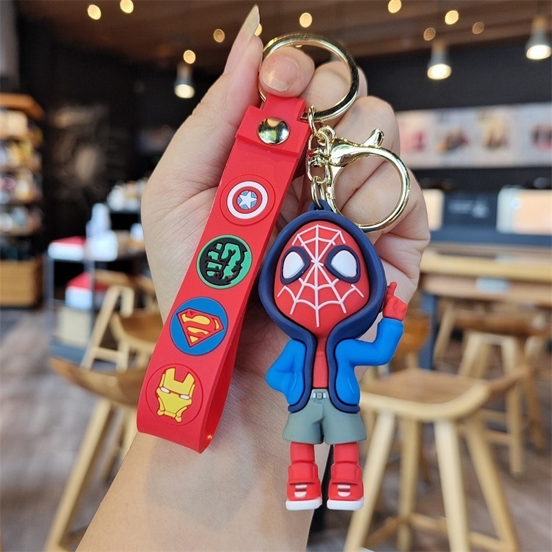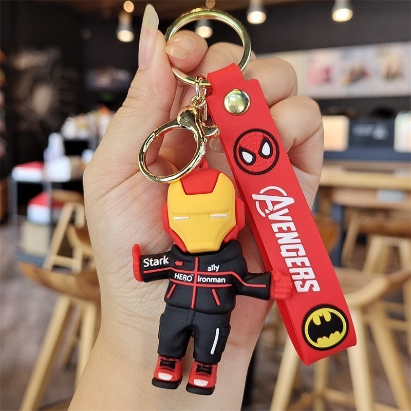 アベンジャーズ漫画キーホルダースパイダーマンアイアンマン人形ペンダント車のキーチェーンリング