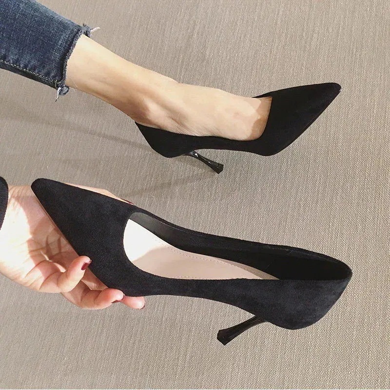 美脚 楽ちん ハイヒール スエード ポインテッドトゥ ピンヒール レディース 痛くない 新作 シューズ ローヒール 走れるパンプス 2025新作