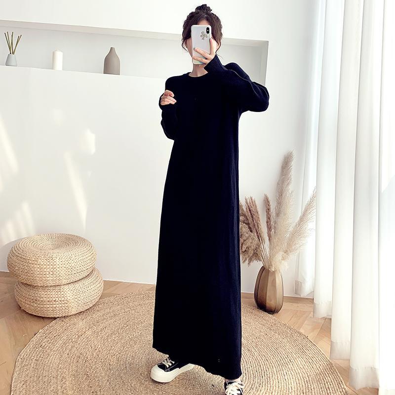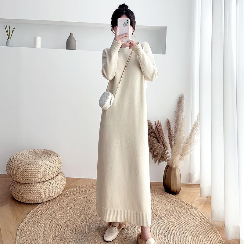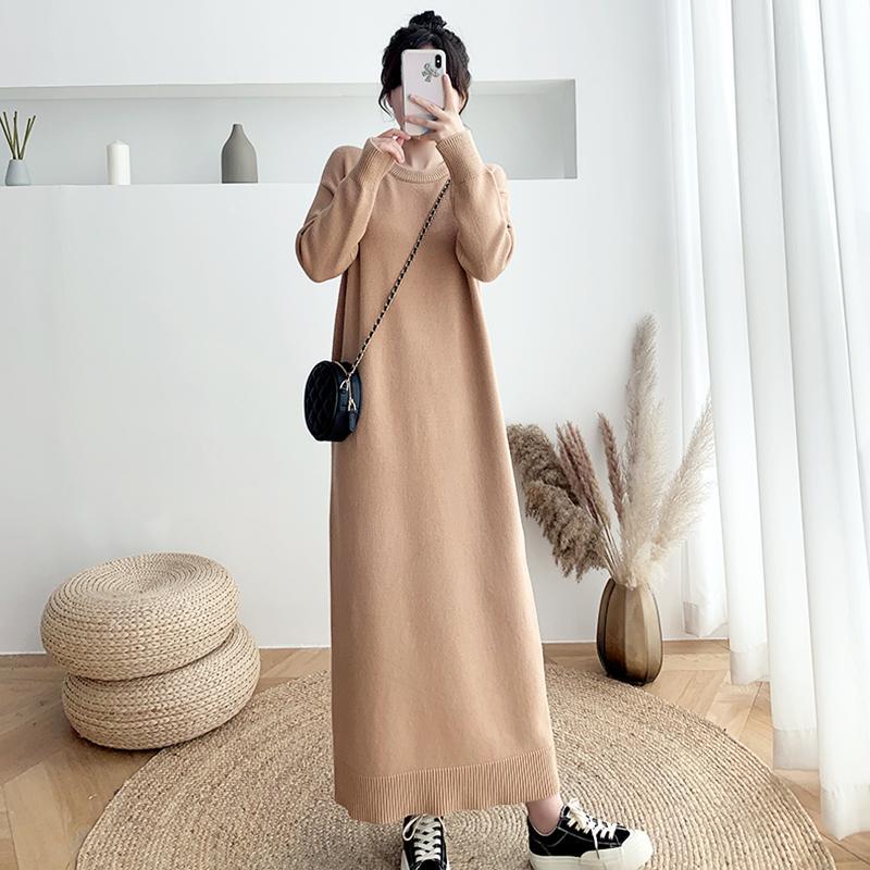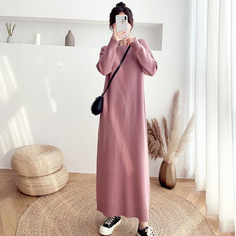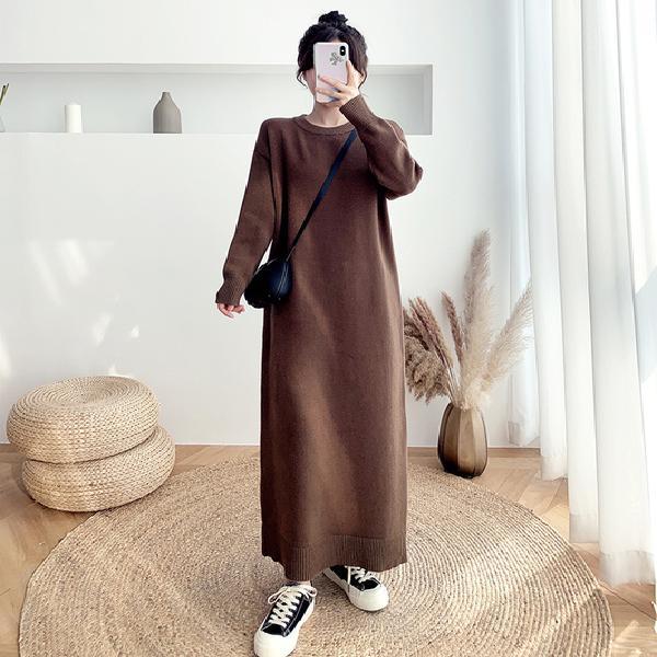長袖ワンピース 秋新作 韓国ファッション 長袖ロングワンピース ゆったり 着痩せ ニットワンピース レディース 気質 長袖ワンピース
