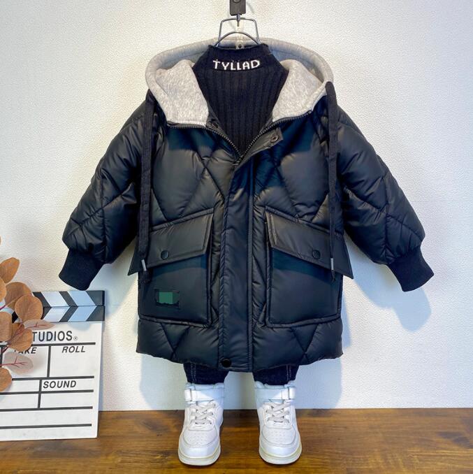 秋と冬新しい男子かわいい暖かくしてくださいプラスベルベット綿の服ミドル丈のサーマルパッド入り服120-160cm8B53