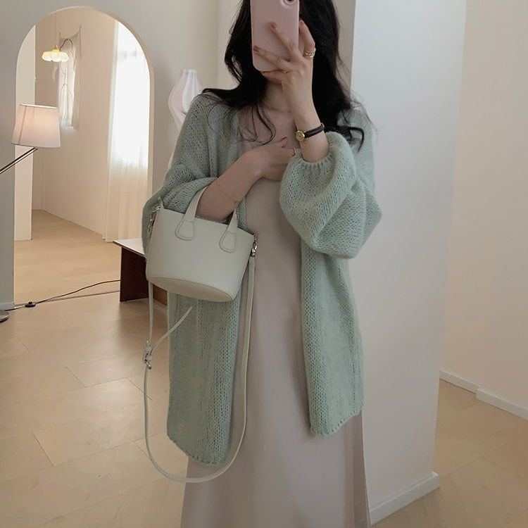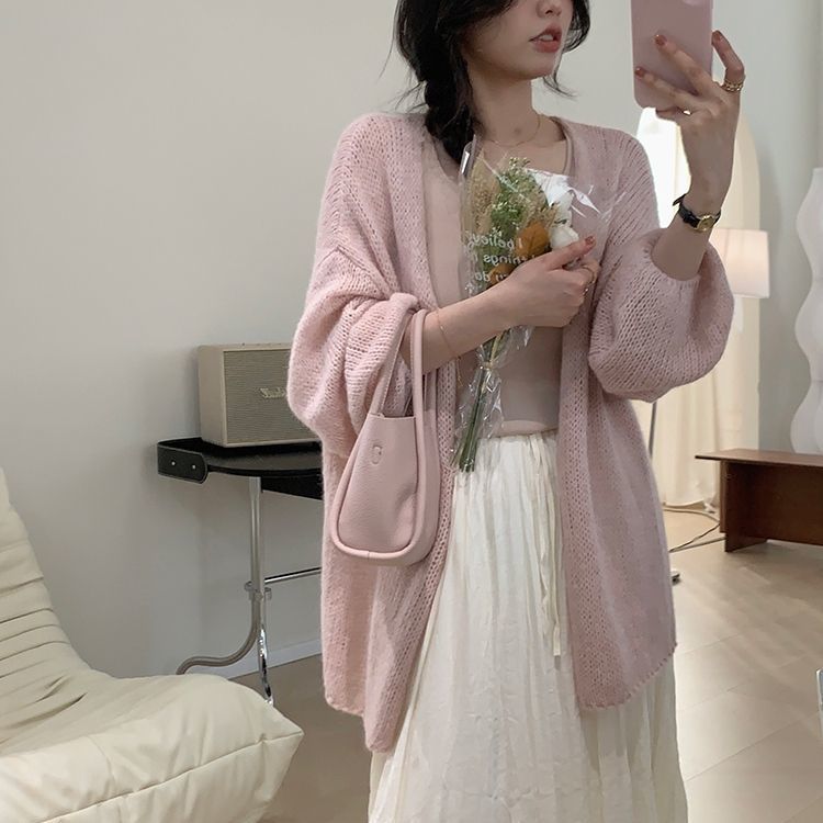 ふんわりもちもち 優しい ランタンスリーブ カーディガン ゆったり ニット 気質 ジャンパー・コート 薄手 カーディガン カーディガン レディース アウター サマーカーデ ニット レディースファッショ
