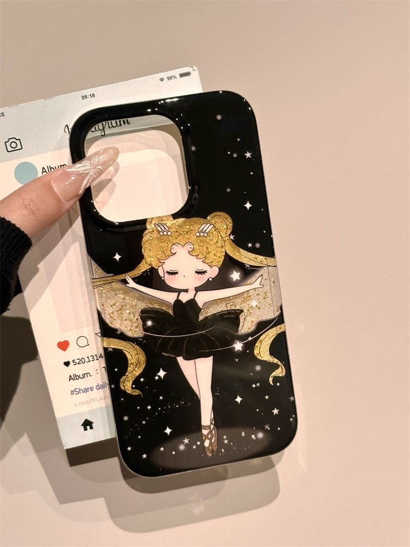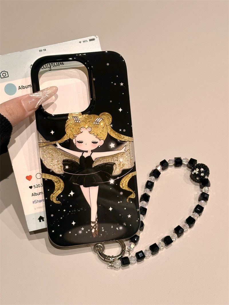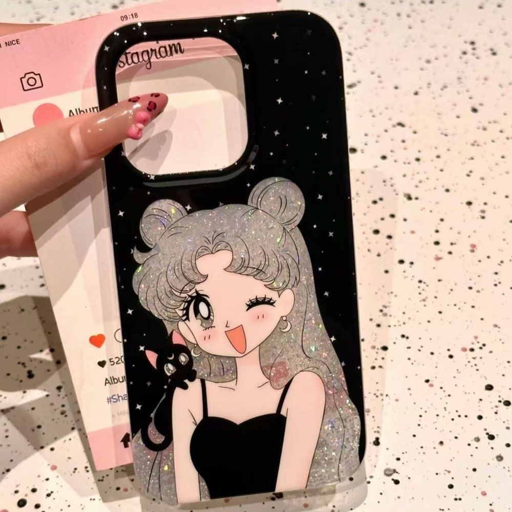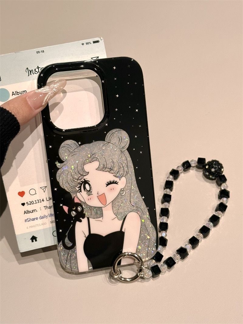 アップル16 pro/15/14/13韓国版おしゃれな学生の誕生日プレゼントにぴったりな可愛い黒猫透かし彫りキラキラピンクの美少女リバーシブルケース