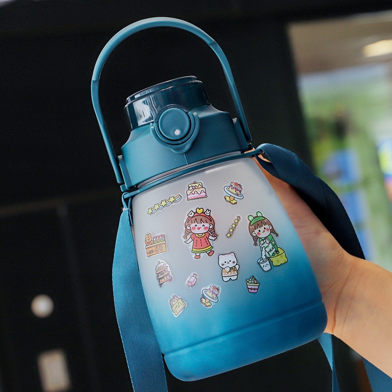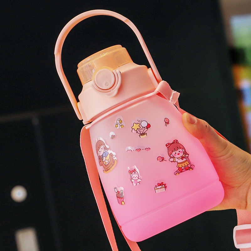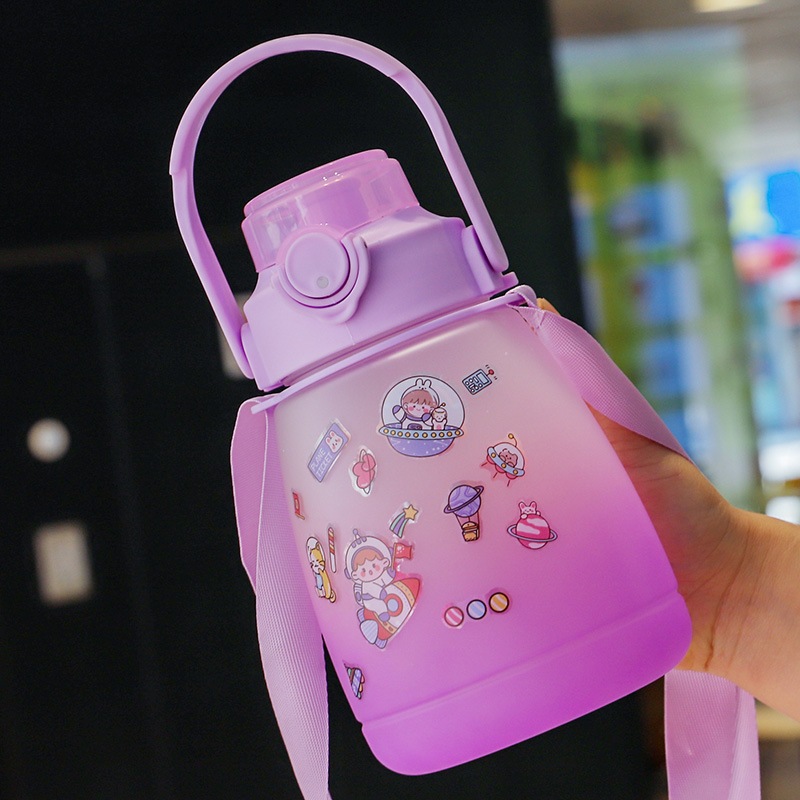 価値の高い夏の子供用ストロー飲料水カップ大容量の大きな腹カップ持ち運び可能な女の子用プラスチックカップギフト