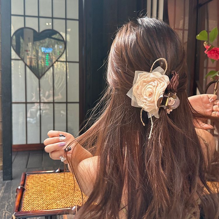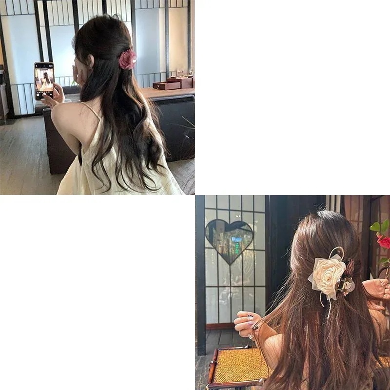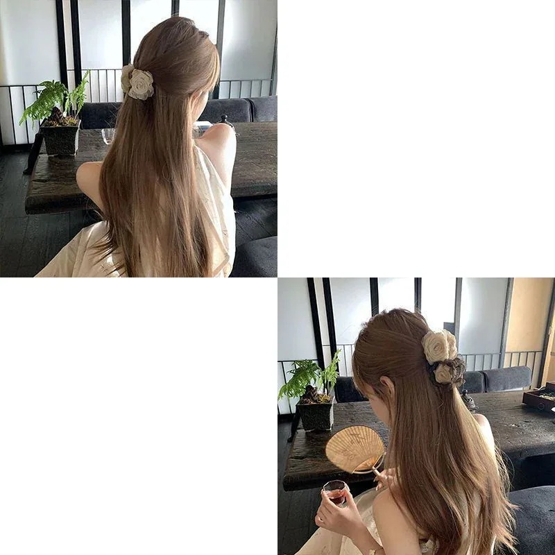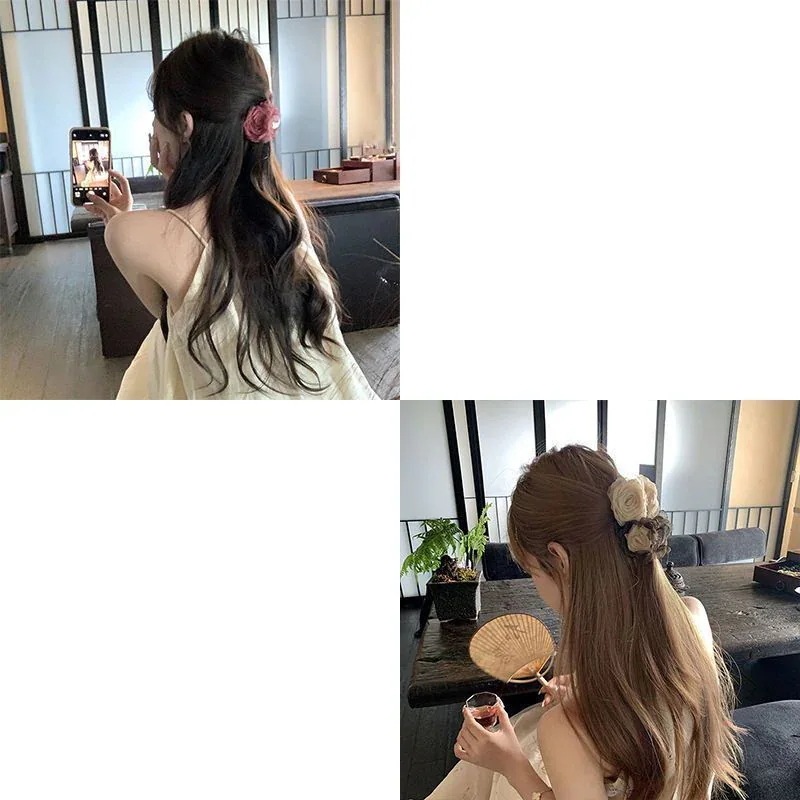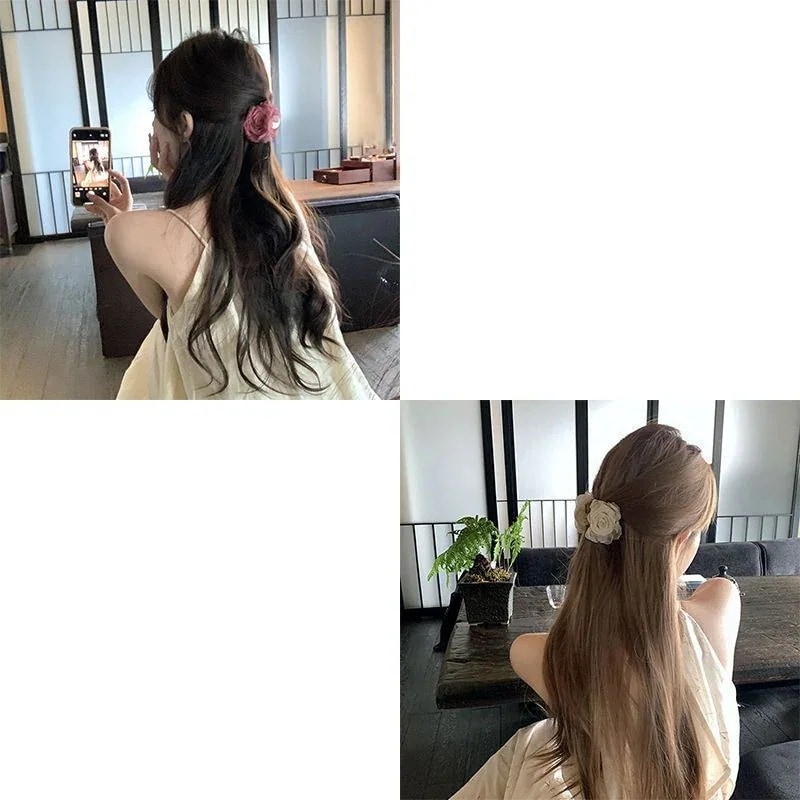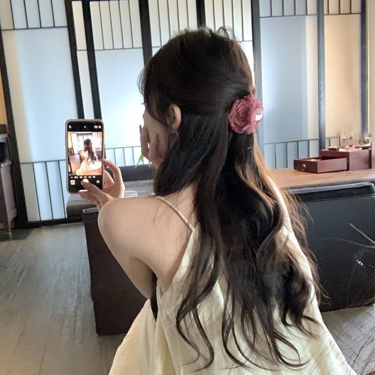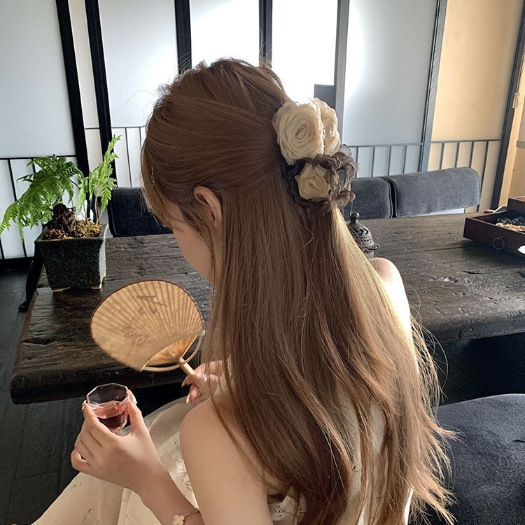 新中国式の花は乾燥したバラの髪飾りを挟んで髪を半分にして古風な髪飾りをします