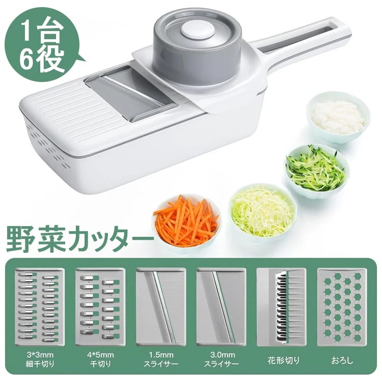 スライサー 千切り 野菜カッター 1台6役 6in1 せんぎり 調理器セット 厚み調節 多機能 プログレード やさしいおろし器 キャベツ だいこん