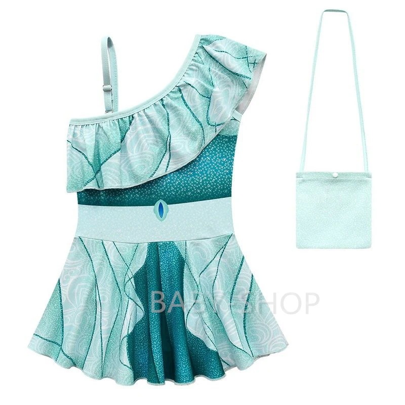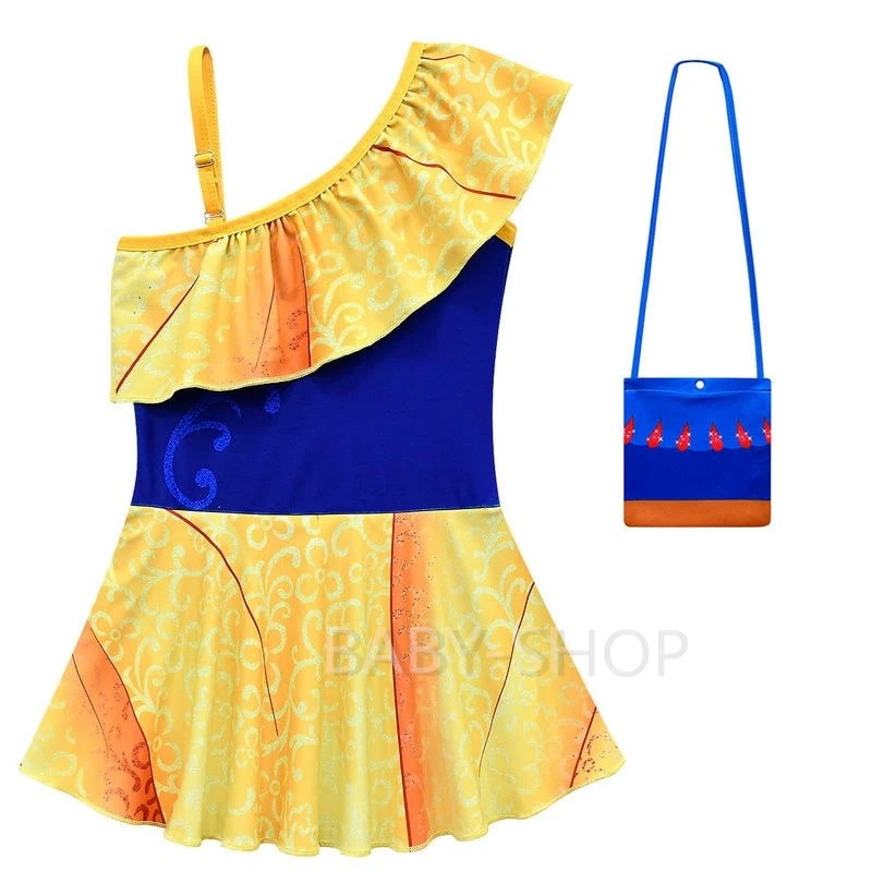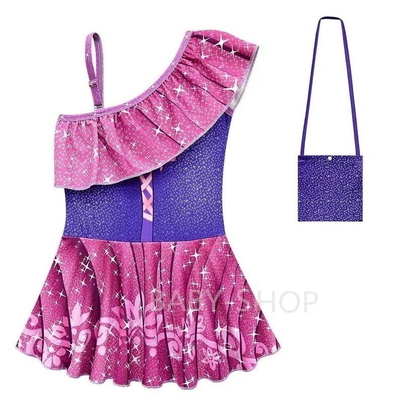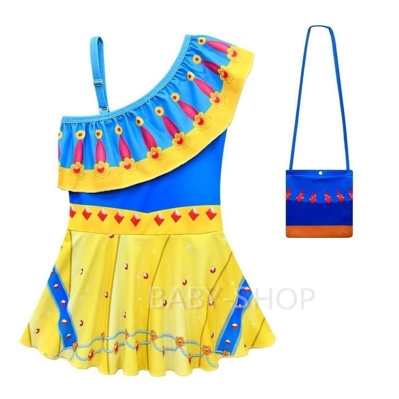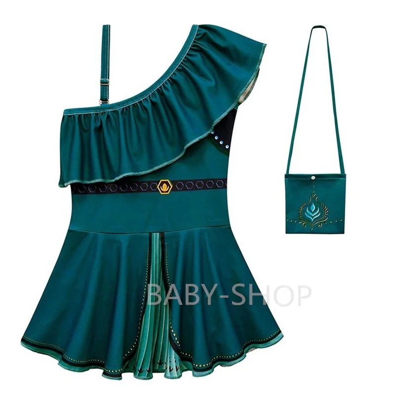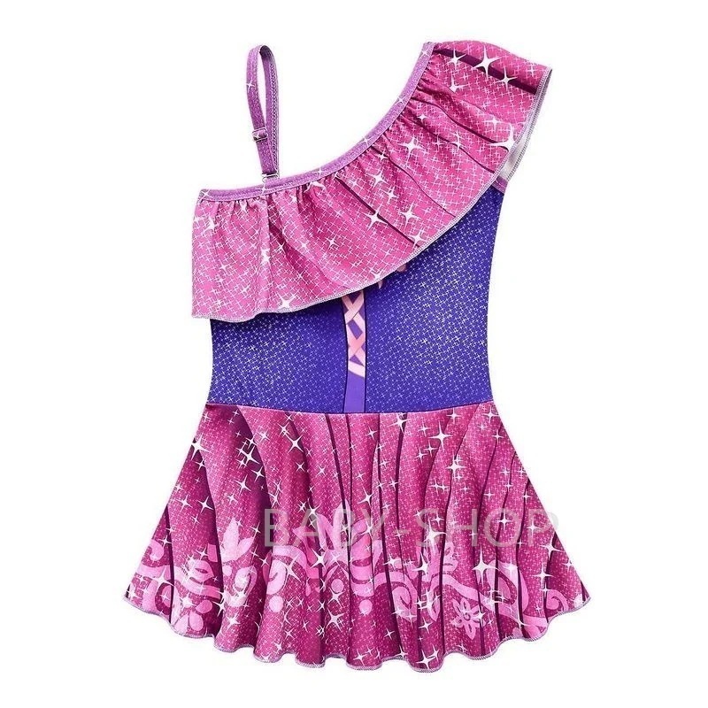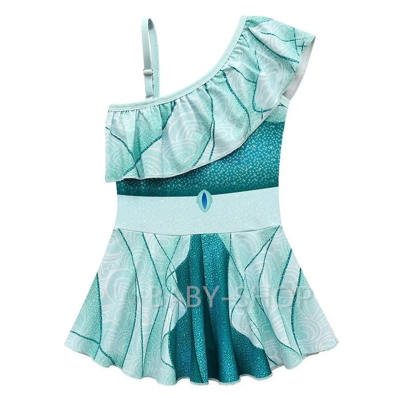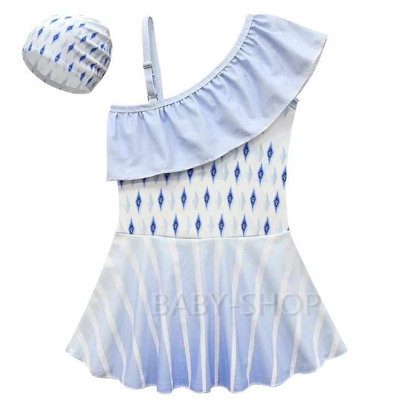 2025新作 ディズニー 子供用水着 アナと雪の女王 プリンセス水着 エスタナ プリンセス 女の子 斜め肩 ワンピース水着 水泳帽 水着