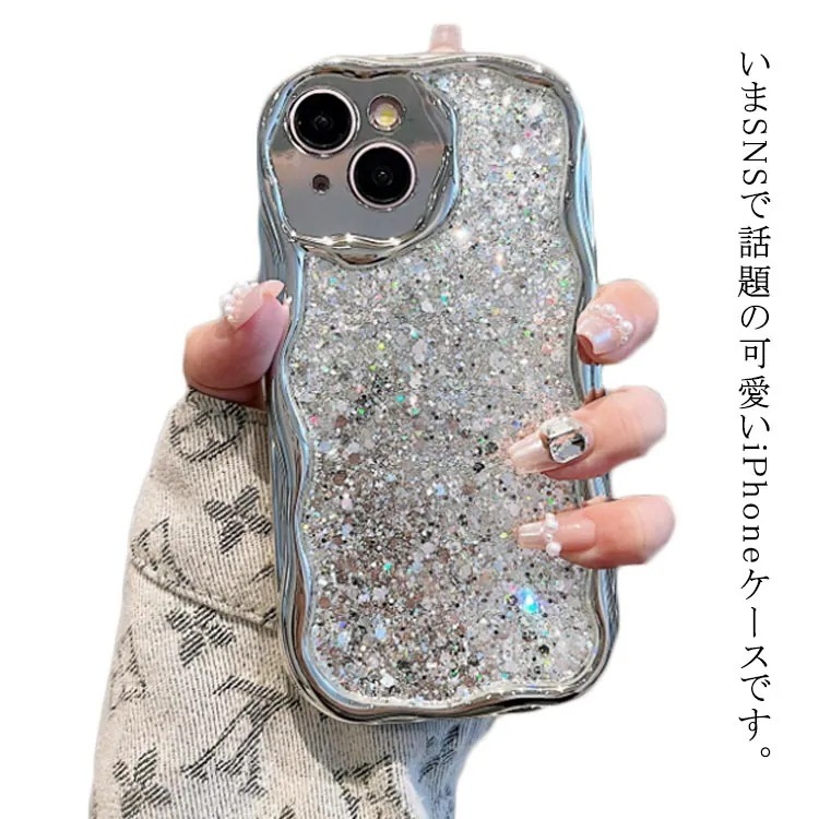 うねうね 可愛い iPhoneケース キラキラ うねうね なみなみ iphone15Plus Pro max iphone14 iphone13pro max iphone12 シルバー 韓国 シリコ