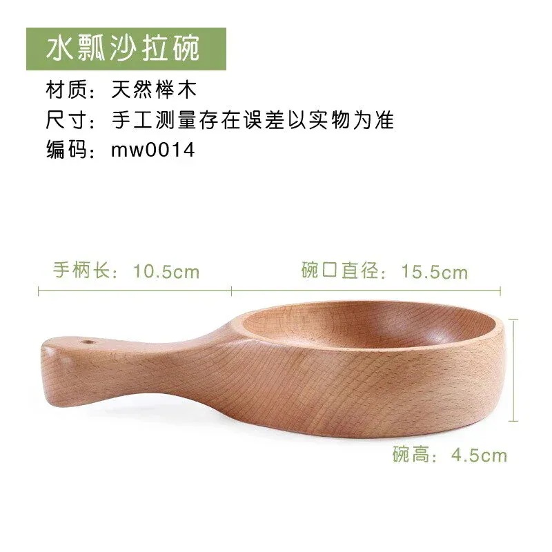 工場直販のブナ木製ボウルハンドル付きフルーツサラダボウル多機能木製ボウル木製食器卸売