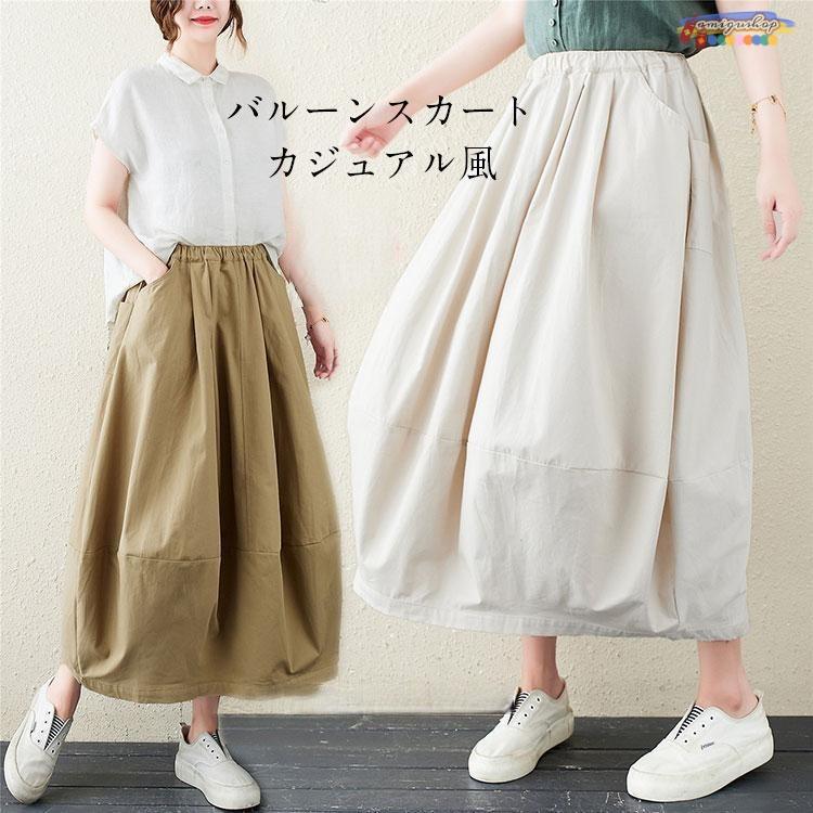 ーンスカート レディース ロング丈 ーン ロングスカート スカート ミモレ丈 Aライン マキシスカート ウゴム ベージュ/杏色