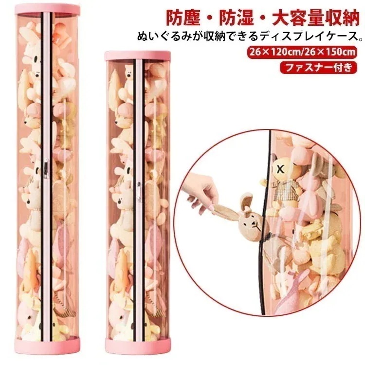 ぬいぐるみ収納 透明円柱のぬいぐるみ収納ケース ファスナー付き 取り出しやすい ぬいぐるみ収納桶 ぬいぐるみ 抱き枕 陳列棚 陳列ケース 展示ボックス ぬいぐるみ収納箱 人形収納かご 人形収納