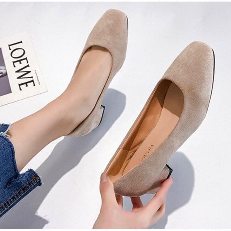 バレエシューズレディースパンプスローヒールリボンポインテッドトゥ太ヒール痛くない幅広057