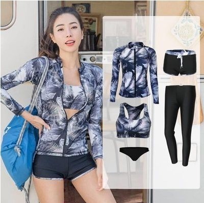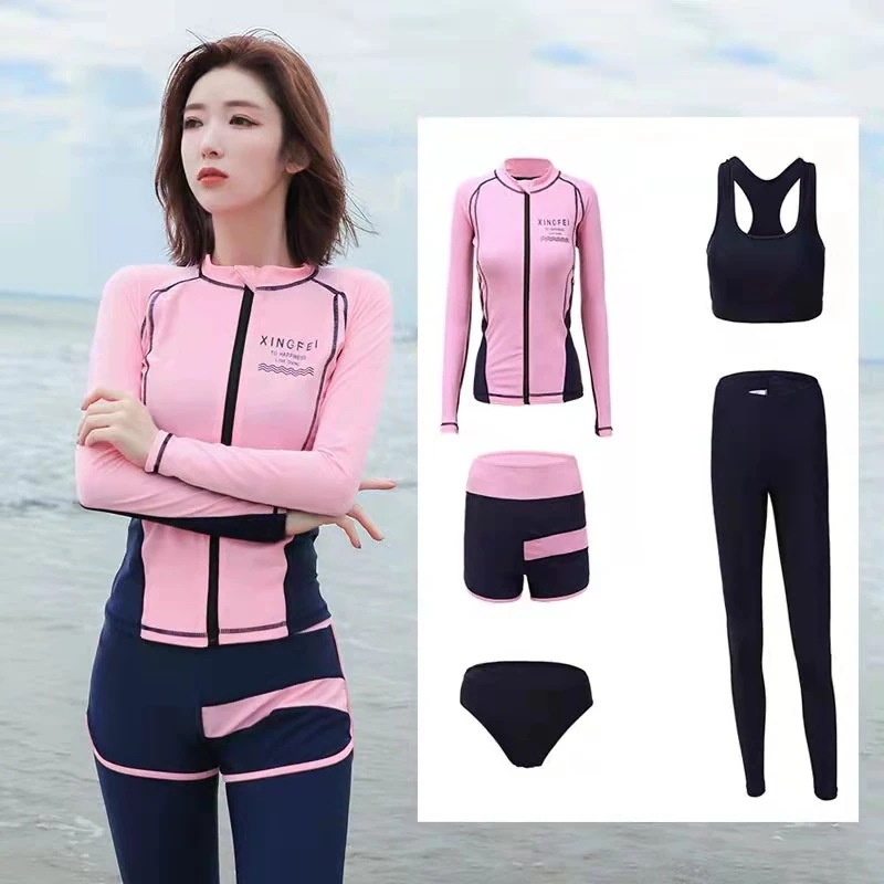 スポーツウェア レディース サーフィン 長袖 ブラパッド UVカット 体型カバー 水着 ウェットスーツ 長袖ラッシュガード フィットネスウェア 五点セット 上下セット 無料!カバーアップ 女の子 水着