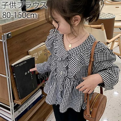 新製品 韓国子供服 シャツ ブラウス 女の子 フォーマル チェック柄ブラウス 長袖ブラウス パフスリーブ Vネックブラウス 卒園式 入学式 卒業式 発表会 受験用 七五三 オシャレブラウス スーツによ