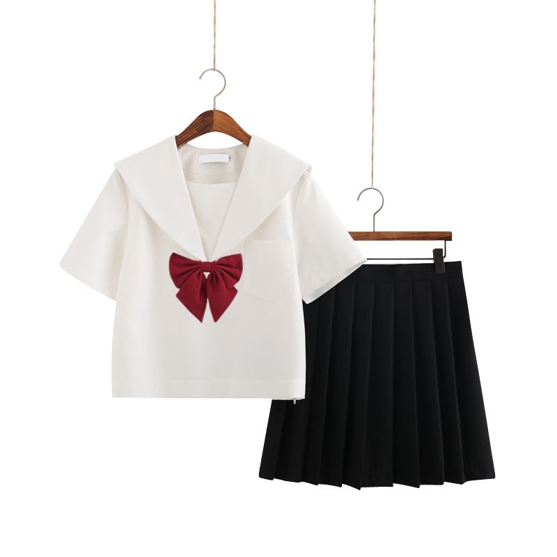 Jkユニフォームスカートホワイトと基本的な日本のセーラースーツカレッジスタイルの夏の服短袖のユニフォームセット r n1001-シングルピースブラックロングスカート r n1002-シングルピースブラ