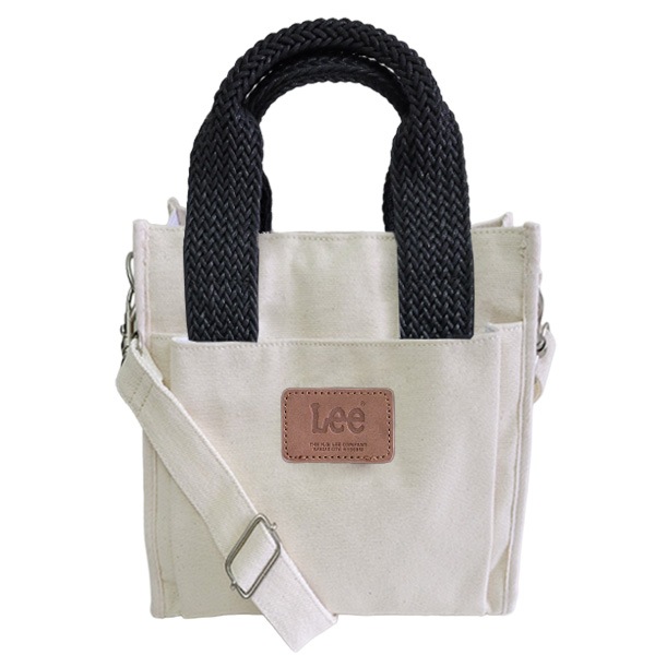 lee2WAY ミニ スクエア トートバッグ ショルダーバッグ ミニトート ランチトート コットン メッシュ レディース キャンバス ロゴ ブラック ホワイト