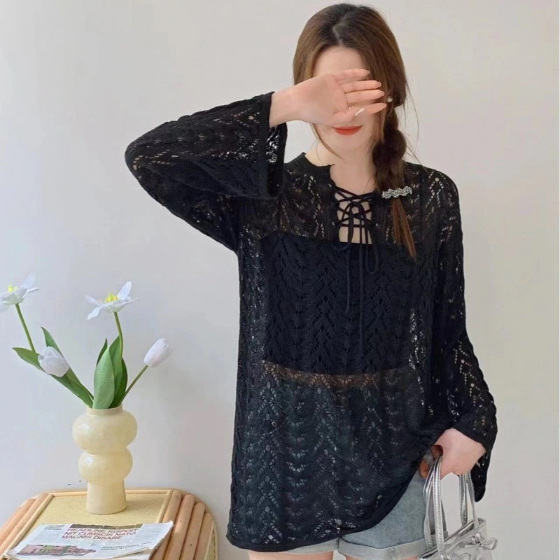秋 レース透かし彫り設計 春夏 ゆったり 紫外線対策 ロングTシャツ レディース 日焼け防止カーディガン百掛けuvカットブラウス 韓国ファッショントップス