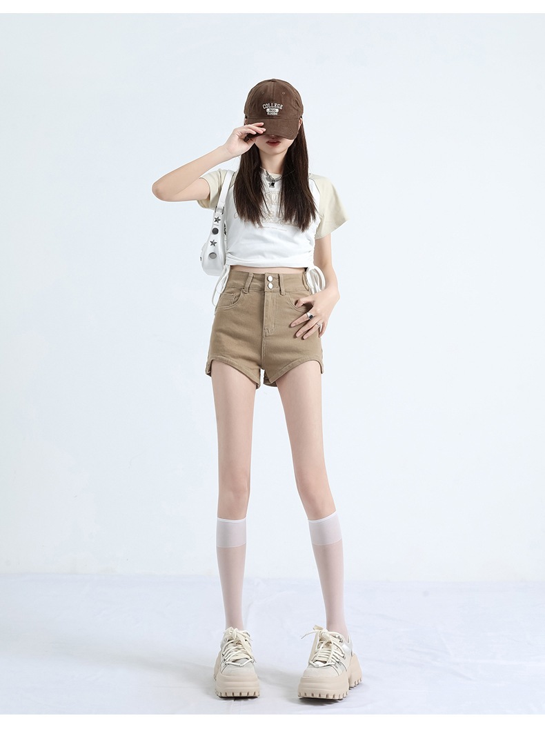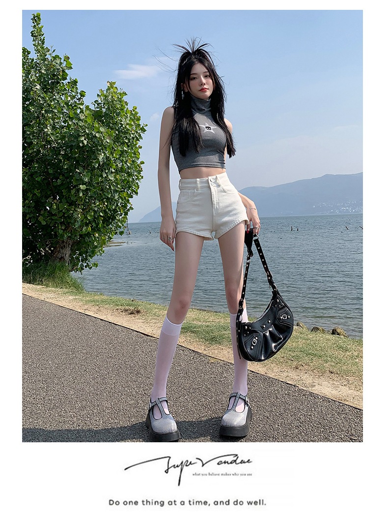 夏の新作ハイウエストスリムアウターに白小柄脚見せデニムパンツ女夏の新作