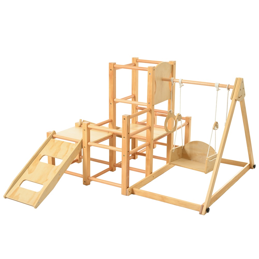 【元SKU:N509P191276A 折りたたみ式】ジャングルジム 天然木 すべり台 滑り台 屋内 室内用 室内遊具 キッズ 子供 誕生日プレゼント おもちゃ
