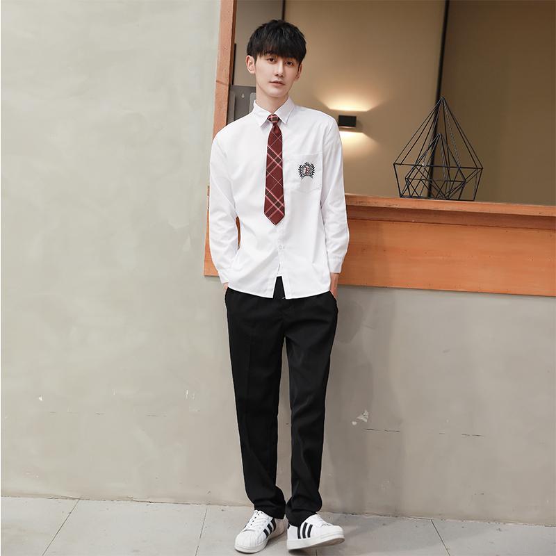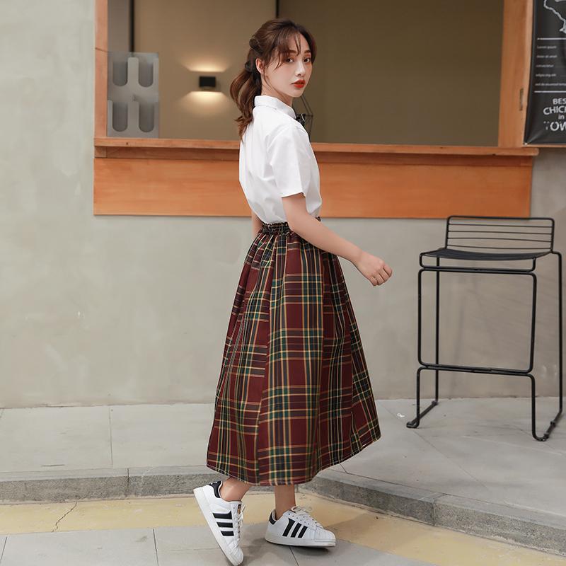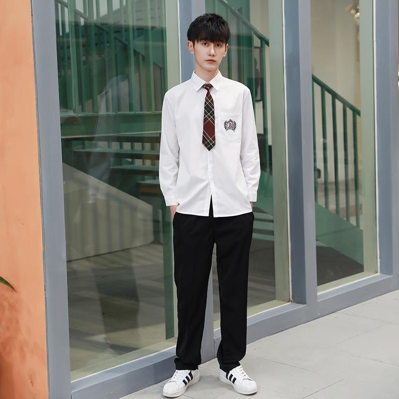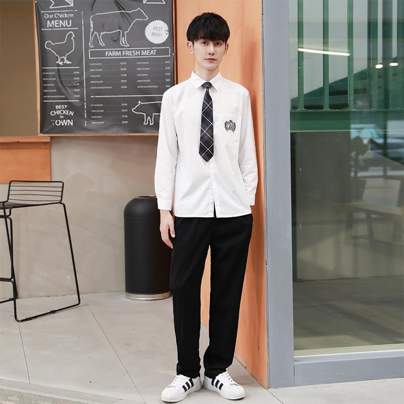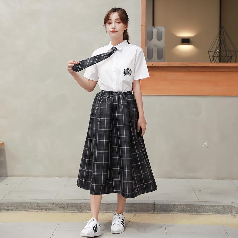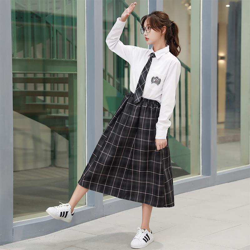 11 クラスクラスユニフォームユニフォーム秋と夏のスーツカレッジスタイルロングスカート韓国スタイルinsジュニア高校生 r n1001-女性の白い長袖 +灰の長いスカート +ネクタイ r n100