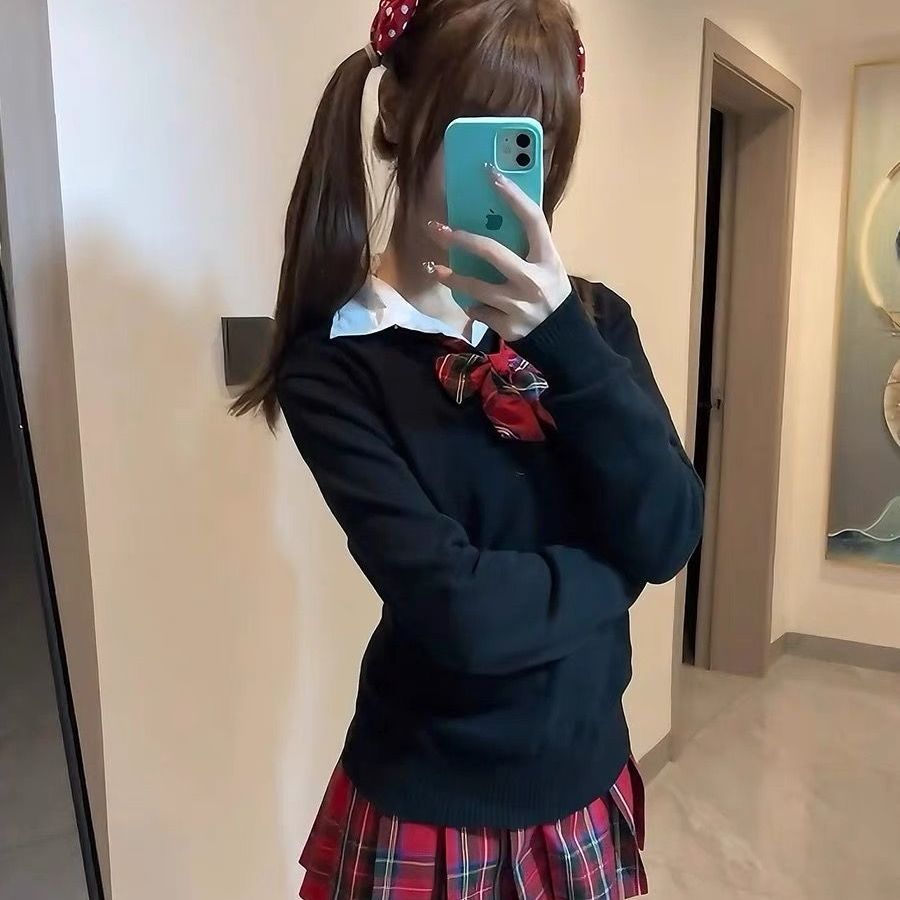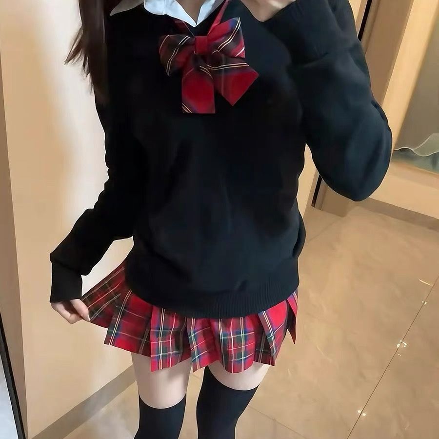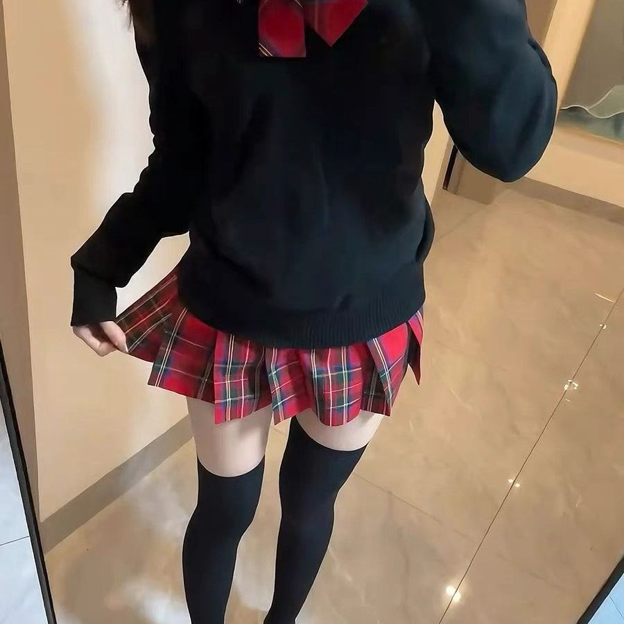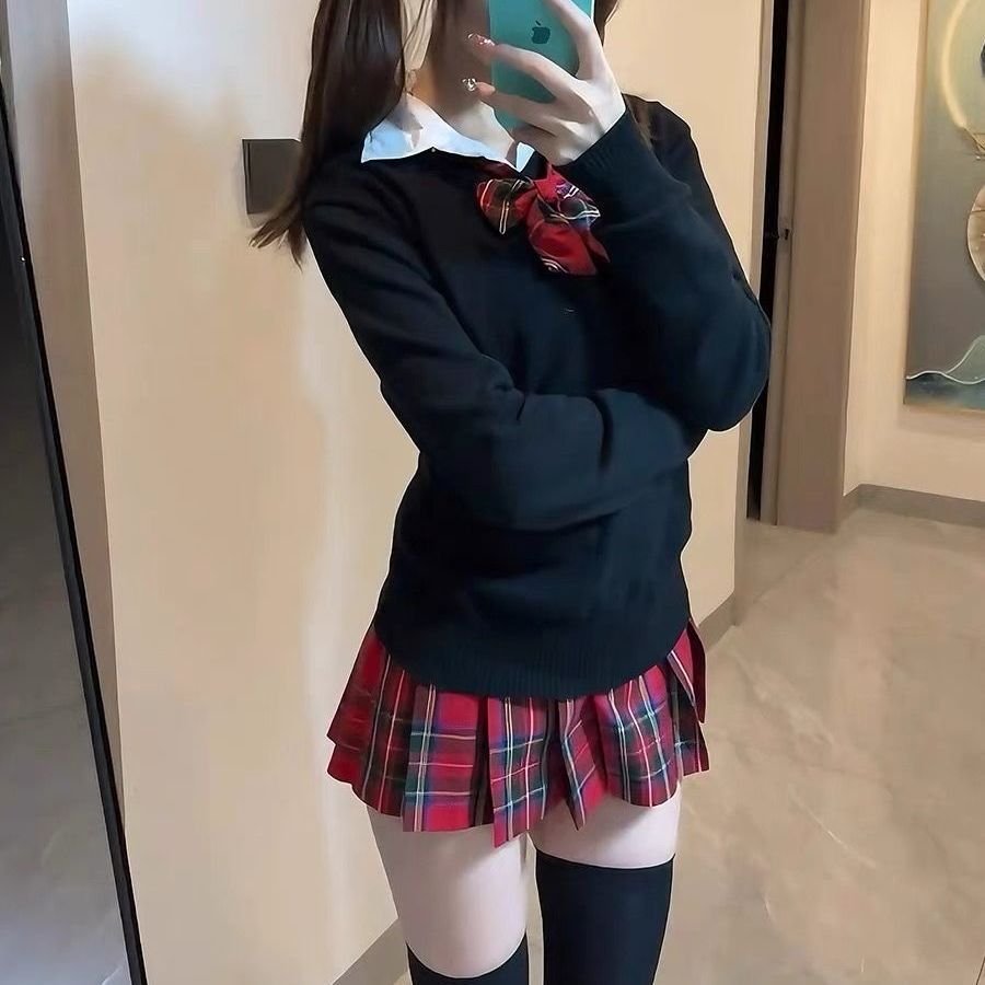 小さなペッパーjkユニフォームセットセット秋と冬のオリジナルの本物の日本のクリスマスレッド格子縞のスカートスクールプリーツスカート女性の短いスカート